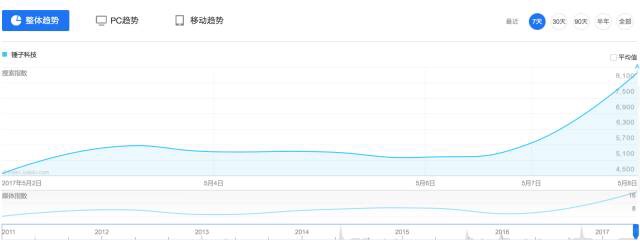 ▼百度指數(shù)(關(guān)鍵詞:錘子科技)
